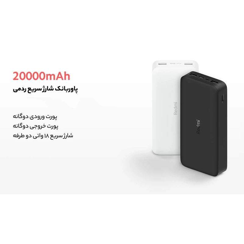 پاوربانک شیائومی مدل Redmi china ظرفیت 20000 میلی آمپرساعت