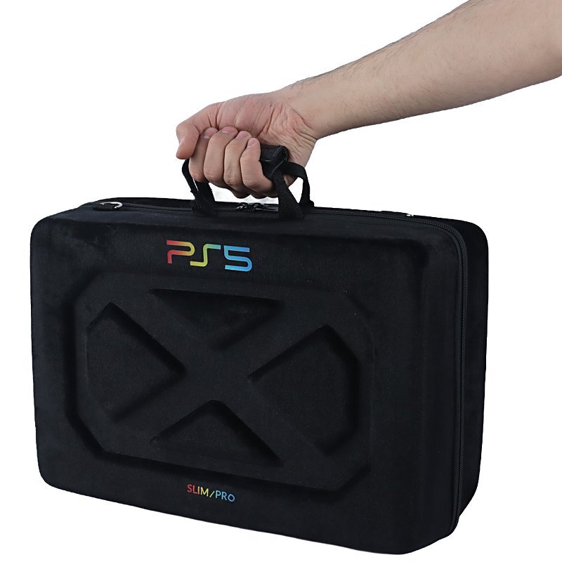 کیف کنسول بازی دوکاره PS5 slim / pro مخملی مشکی طرح ایکس